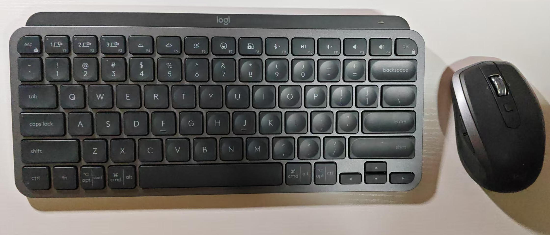 - MxKeysMini 键盘的打字键程和回弹力度比 Mac 原装键盘要好,但是最上排的功能键——调亮度、声音和自媒体播放的按钮排布,照着原装的还是有差异,需要适应。另外,它左下角的 ctrl 和 fn 按钮与 Mac 的原装布局相反,而恰恰 ctrl 是我很多快捷键里的一环,所以换到 MxKeysMini 后,还是有许多不适应的。